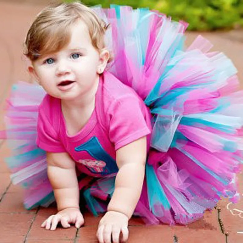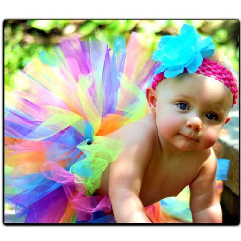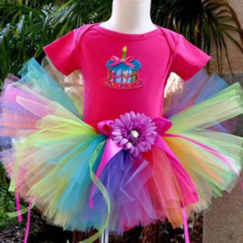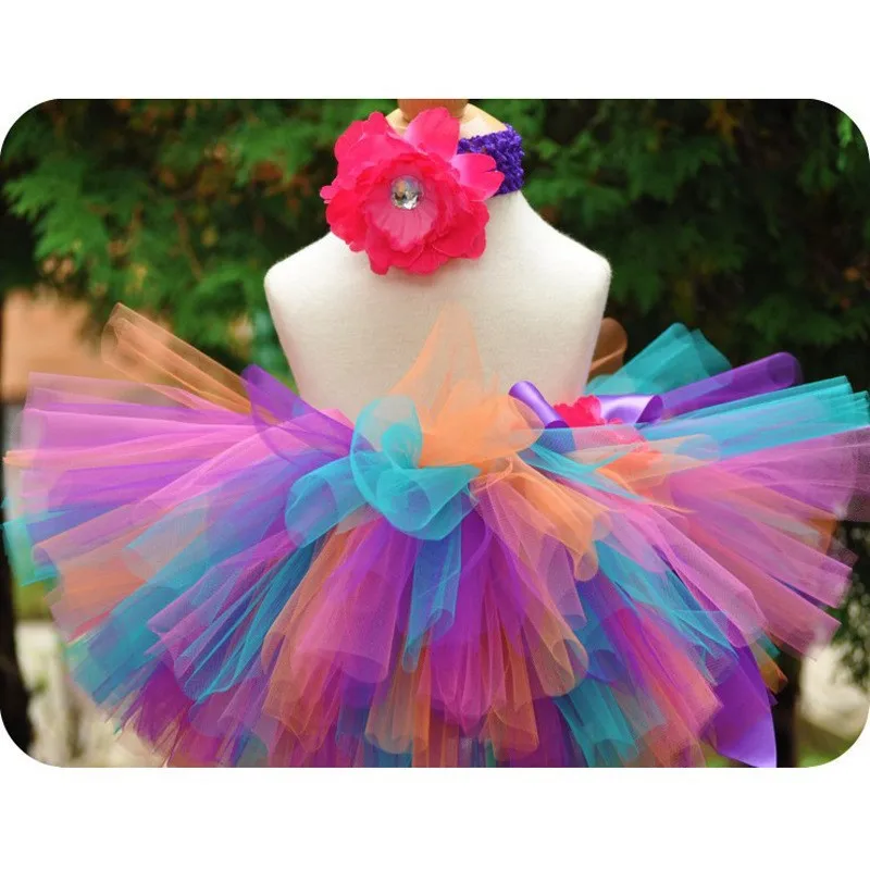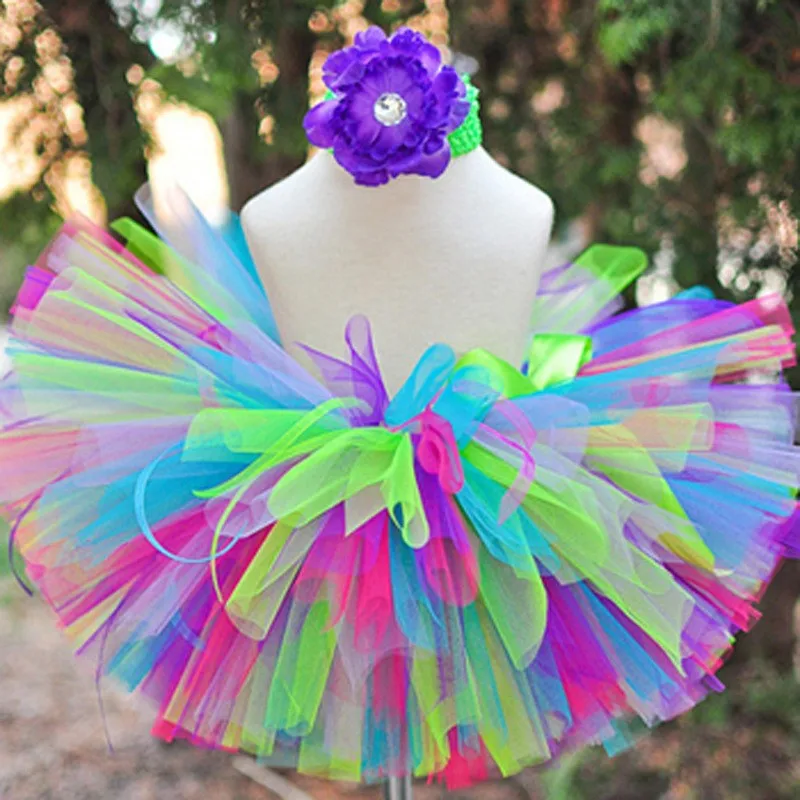 Girl's Rainbow Color Tutus Skirts Baby Handmade Multicolor Tulle Ballet Dance Tutus with Flower Headband Kids Party Pettiskirts