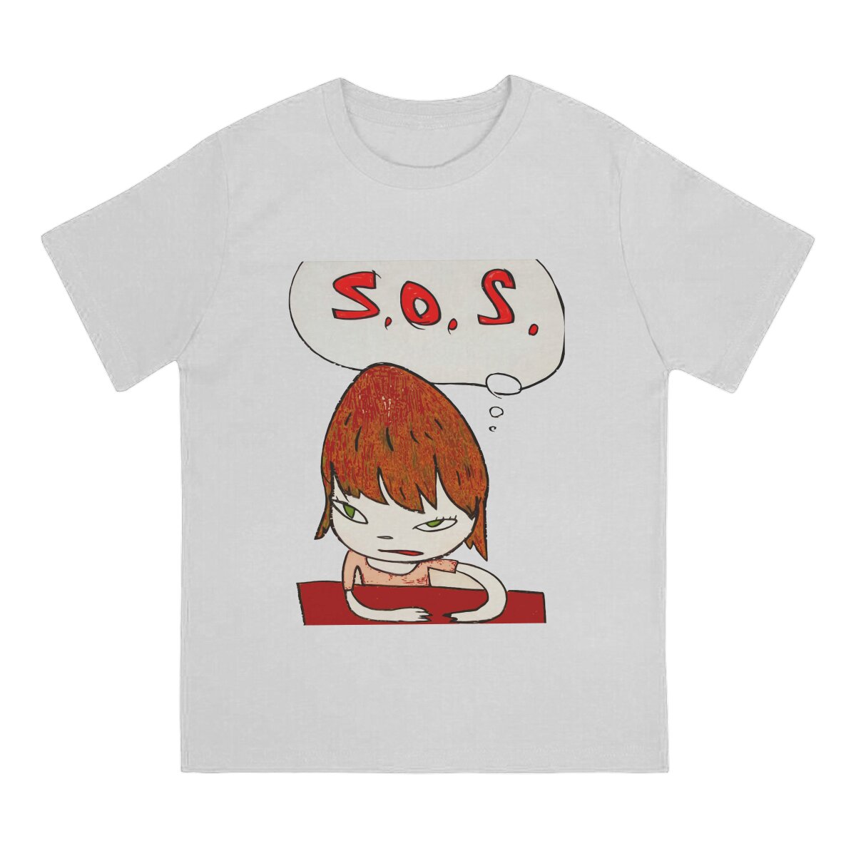Yoshitomo Nara Japanese Artist S.O.S T Shirt Fashion Men Polyester Tees Summer Clothing Harajuku Crewneck TShirt