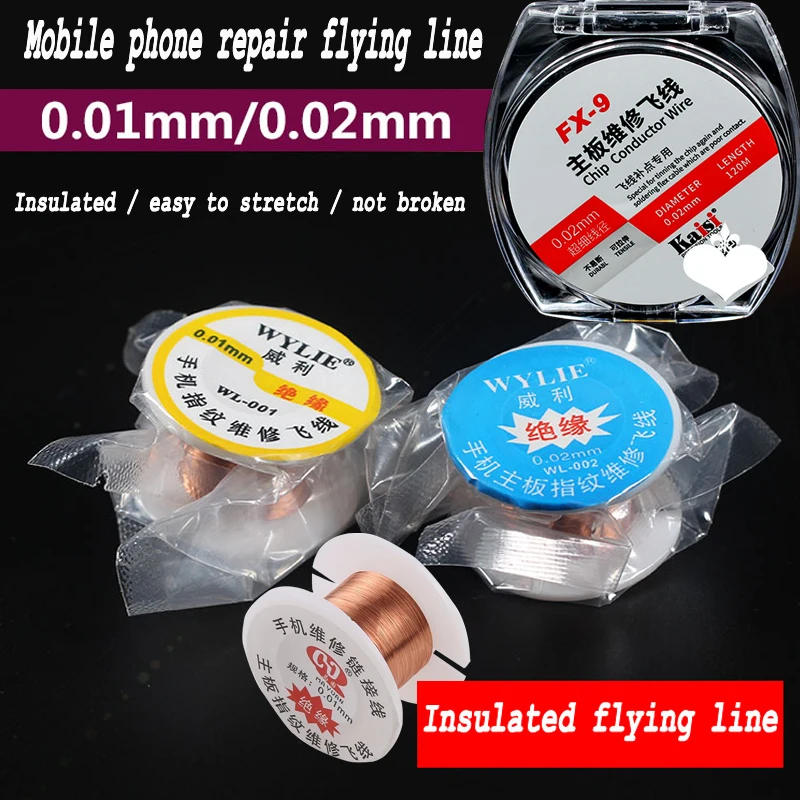original 0.01mm 0.02mm Pure Copper Wire Fly Line Fix Repair for iPhone iPad  Motherboard Logic Board PCB Fingerprint Solder